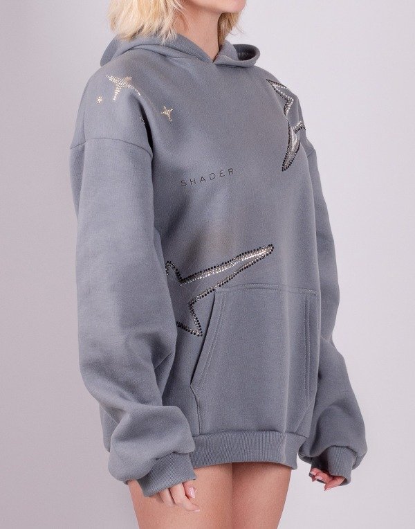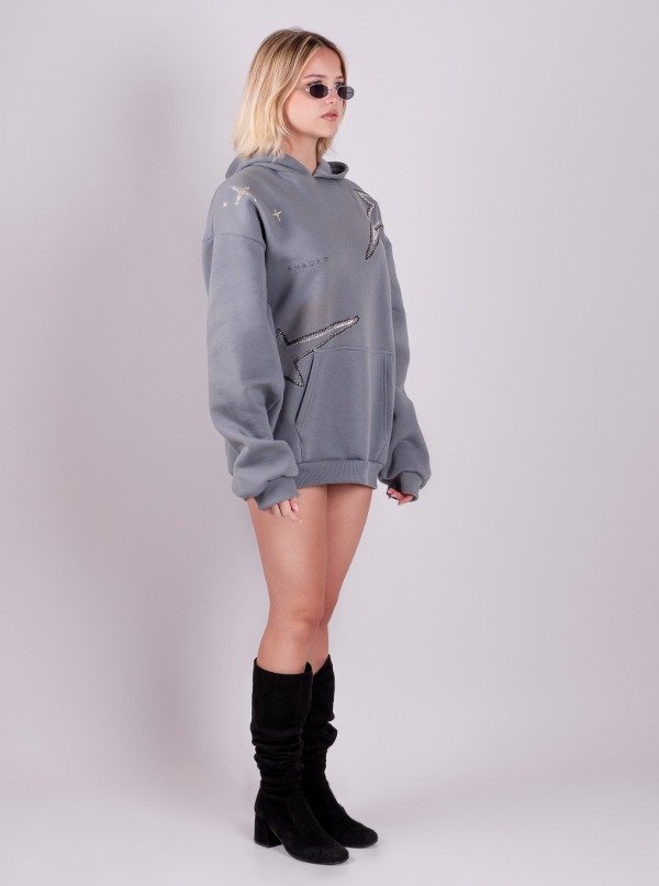 Hoodie S-STAR color gris. Proceso de estampación 100% artesanal, completamente con starss de 4 diferentes colores de exelente calidad.